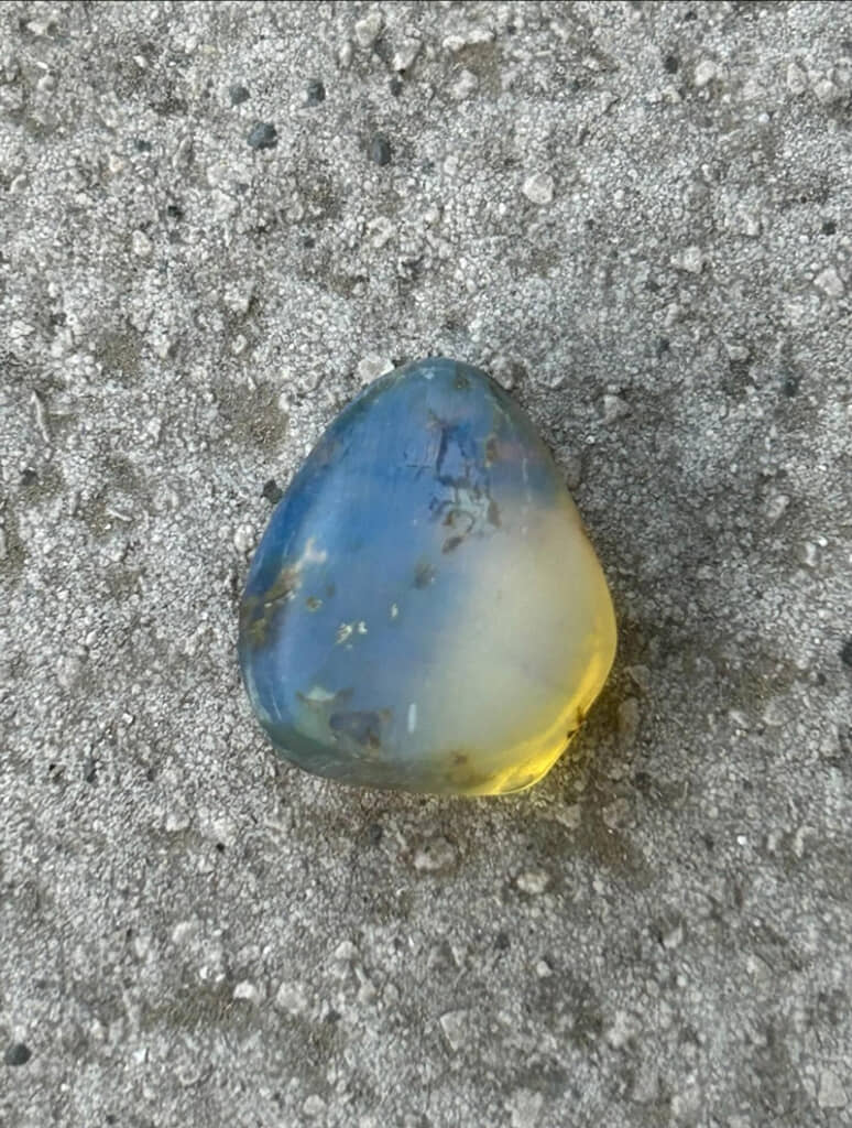ある程度磨くと、琥珀は見違えるような見た目に変わってきました。ザラザラだった表面は、角ばっていたのが嘘のようななめらかさ。そして磨く前は一切見えていなかった、薄い青色が琥珀色とともにぼんやりと浮かび上がっています。