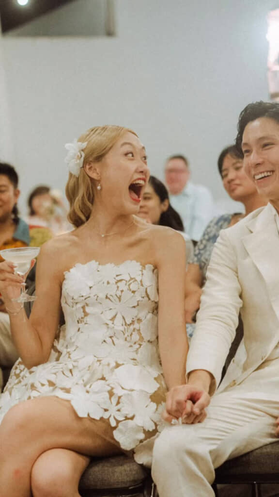 投稿者は、シンガポール出身のインフルエンサー「supercatkei」こと、デニス・テオ・ジャチー(@deniseteojiaqi)さん。2024年に結婚式を挙げたそうですが、そのときの自身の振る舞いについて“理想と現実”のような形で比較しています。