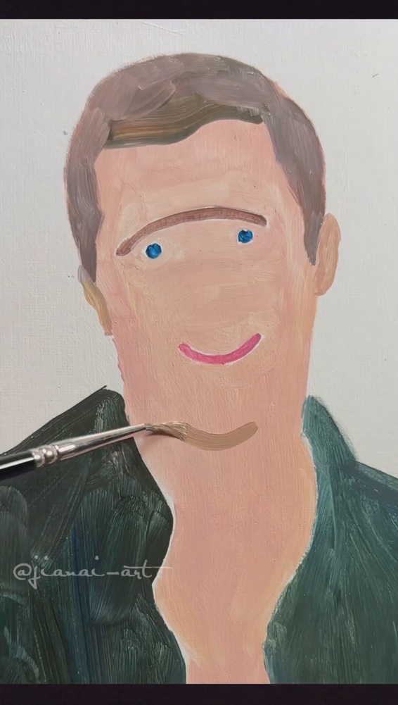 今回ご紹介するのは、まるで子どもがラクガキしたようなシンプルな絵が衝撃の変貌を遂げる動画です。キャンバスの中央には青い絵の具でぽんと描かれた2つの点。その下に、赤い線でにっこりと描かれた口。ごく簡単で素朴な顔が浮かび上がった瞬間、誰もが「かわいいスマイルマークだ」と思うでしょう。ところが、ここから筆を進めるにつれて、その印象は大きく覆されます。