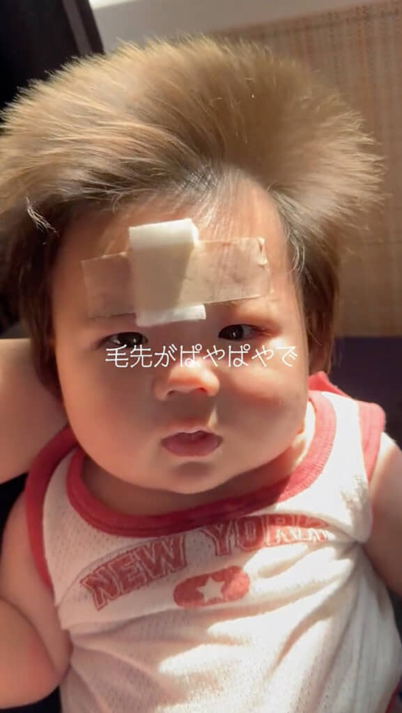 なお、赤ちゃんの髪が上に向かって伸びたり、色素が薄かったりしても成長とともに落ち着いてくることが多いようです。はるくんの場合は、ママさんが多毛でパパさんが猫毛なので遺伝で顕著に現れたのかもしれないですね。現在はるくんは、猫毛どころか剛毛だそうです。