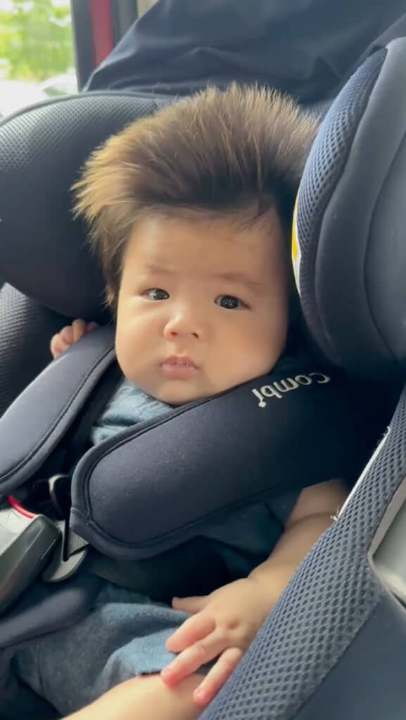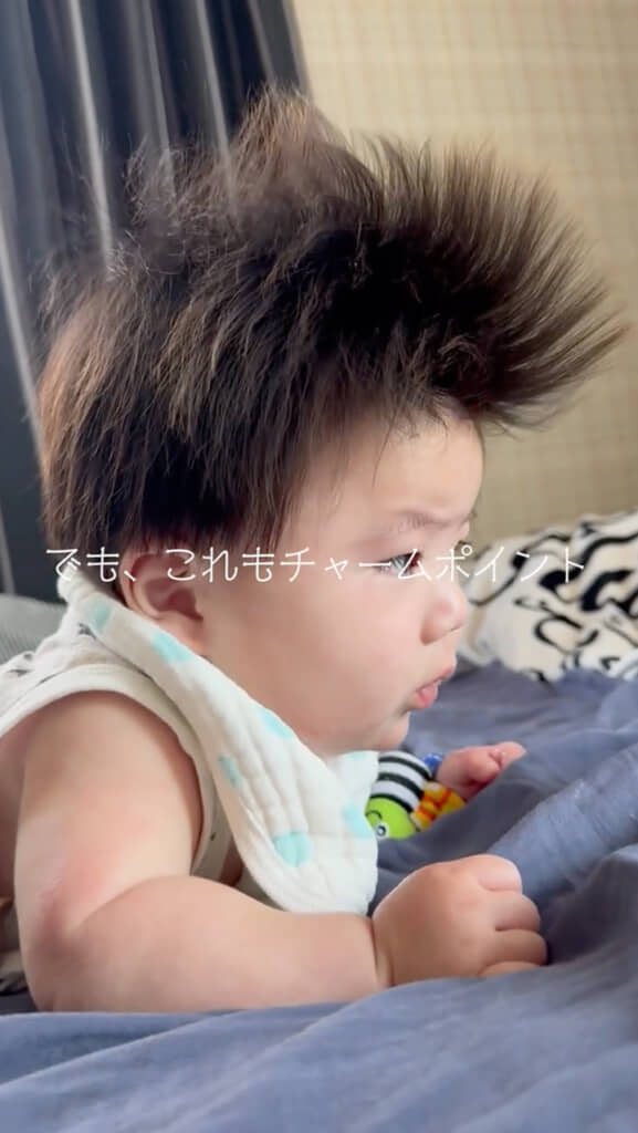 しかし成長するにつれ、だんだん毛量が増えて髪が黒く見えるように。これで一安心かと思いきや、重力に逆らって髪が伸び続け、立派なトサカヘアーが爆誕……。ただ、これはこれでとってもキュートです! ママさんも、チャームポイントだと思い乗り越えたのだとか。