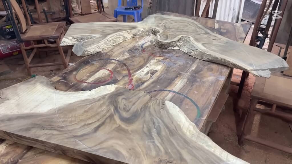 動画を投稿したのは、YouTubeチャンネル「Epoxy Crafts & Wood」(@EpoxyCraftsman)。木材とエポキシ樹脂を使った独創的な家具を作る様子を披露しています。今回は大きな枯れ木の板を用意して、日本の庭園のように美しい家具を作っていきます。