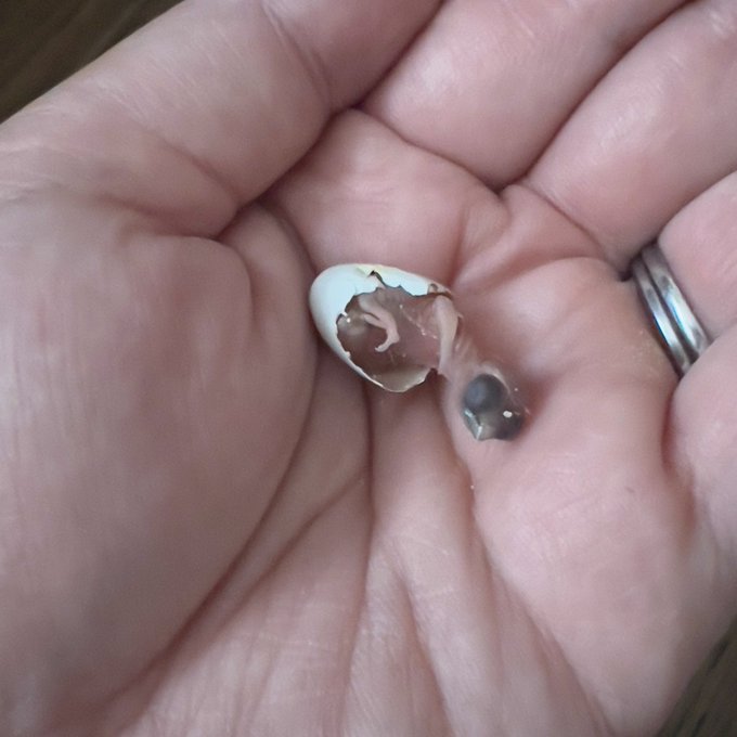 殻が取れるのを少し手伝っている様子(生後0日目)