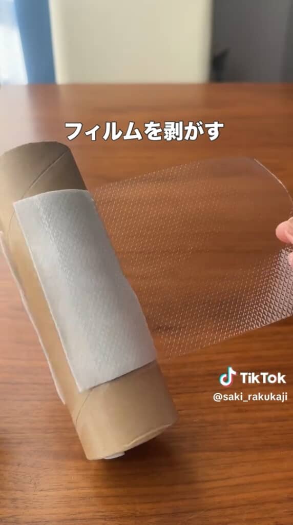 さきさんも思わず「我ながら天才」と言ってしまうような画期的なアイデアで、手の届きにくい場所に貼るときも、これなら簡単です。