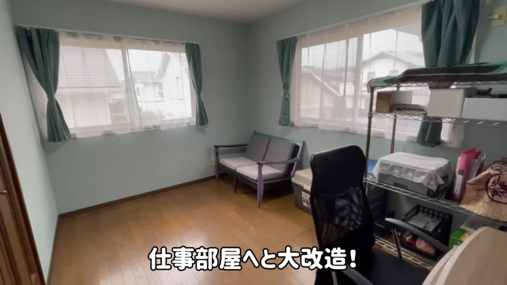 今回の投稿は、長年物置として眠っていた「汚部屋」を夫婦でDIYして仕事部屋へと改造する様子。前半の動画では、部屋の現状を確認。置いてあった物の行き先を決め、壁紙を剥がして補修や掃除をしてきました。