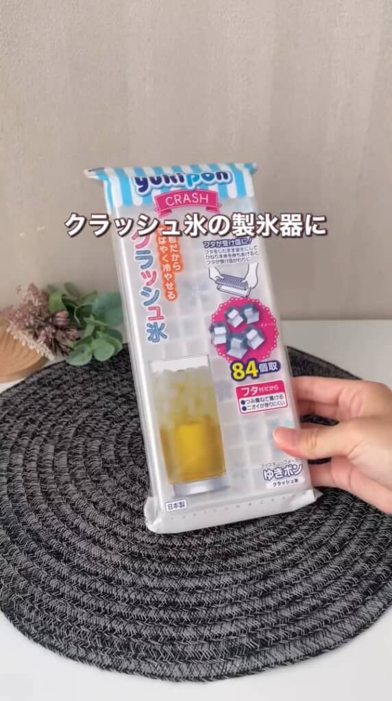 用意するのは、小ぶりなクラッシュ氷を作るための製氷器と、ひらがなやアルファベットが印刷された文字シール、そして同じくひらがな、アルファベットのスタンプです。シールは、製氷器の氷1個分のスペースに収まるサイズのもの、スタンプは氷用の窪みへすっぽり入るサイズ感のものがよさそうですね。なおこれらのアイテムはいずれも100円ショップの「セリア」で見つけたそうです。
