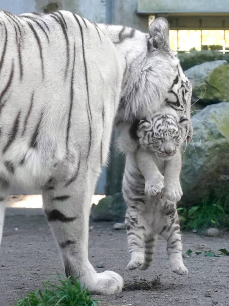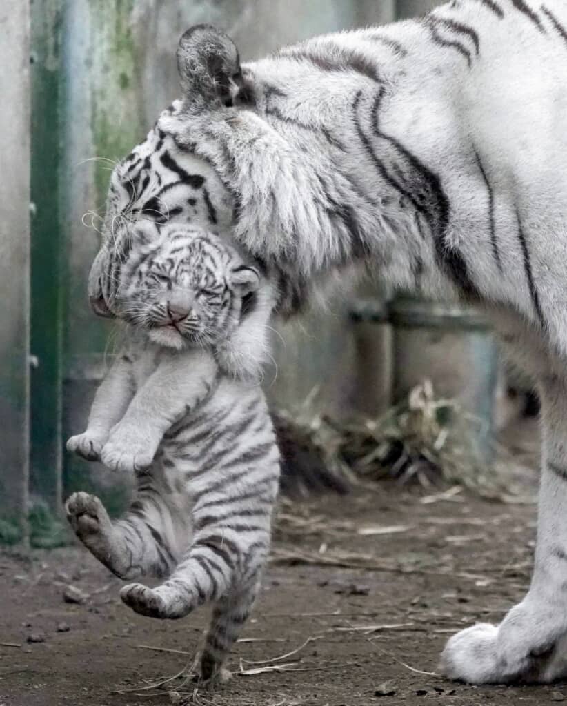 母トラに運ばれた子トラの表情があまりにも「虚無」