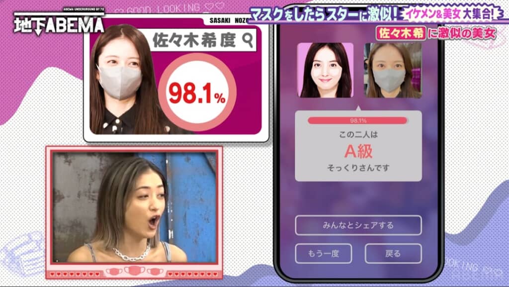 なお事前に、佐々木さんと女性の酷似ぶりをAIアプリで測定したところ、両者は98.1%似ており、“A級そっくりさん”の称号に見事輝いていたのでした。