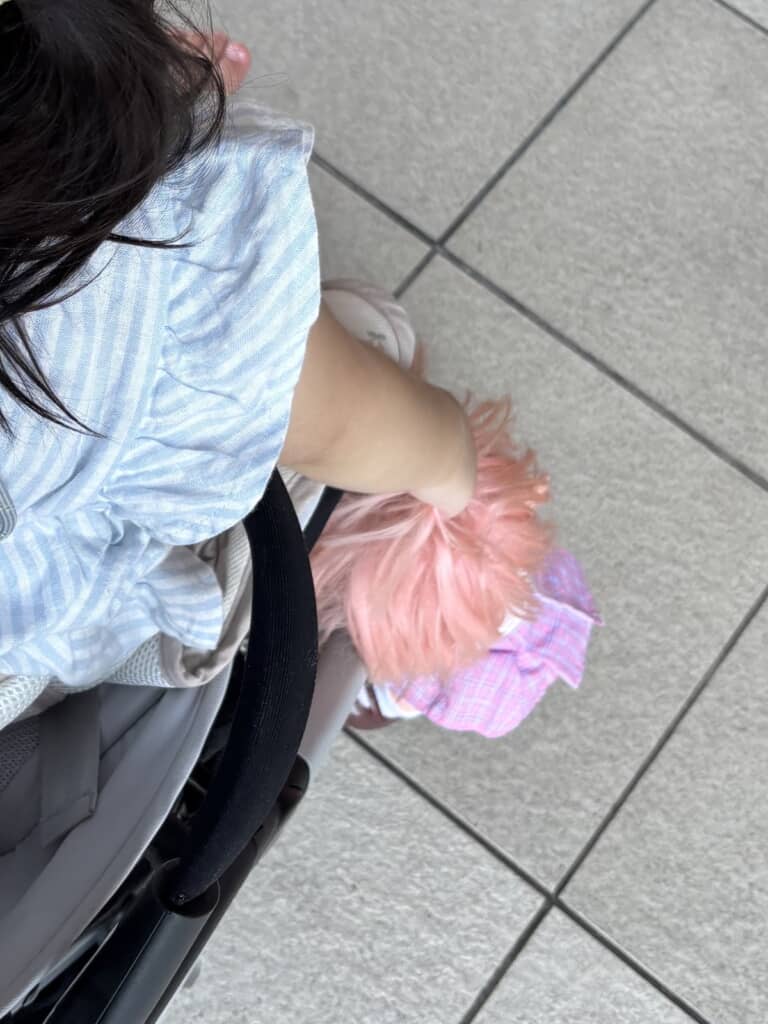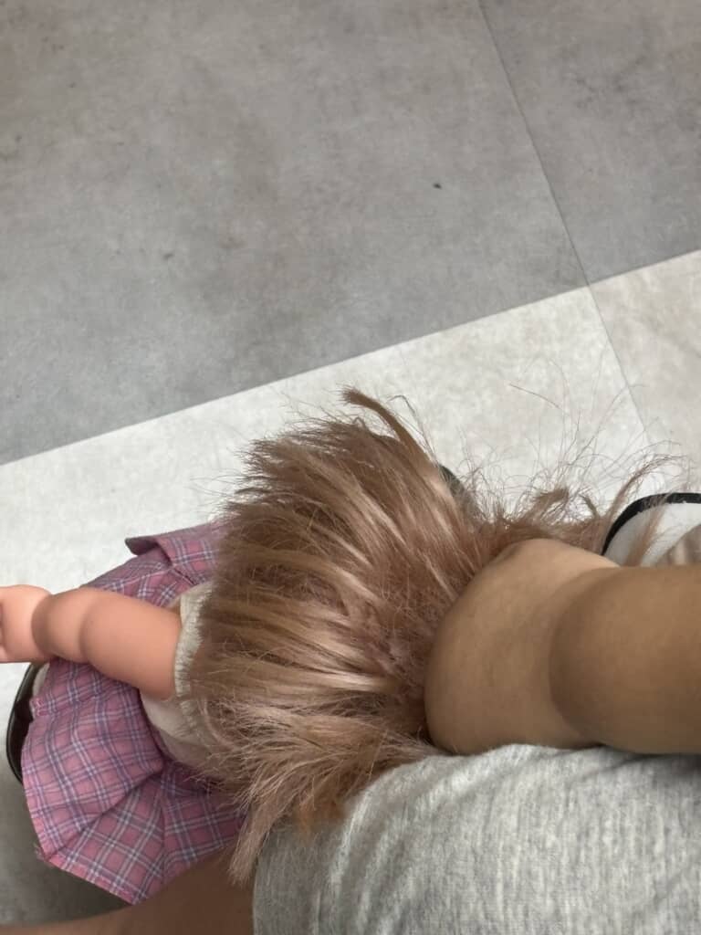 1/2)2歳娘が連れ歩くお人形・メルちゃん。外の暑さで髪色が突然ピンクに変化し、驚きの光景に