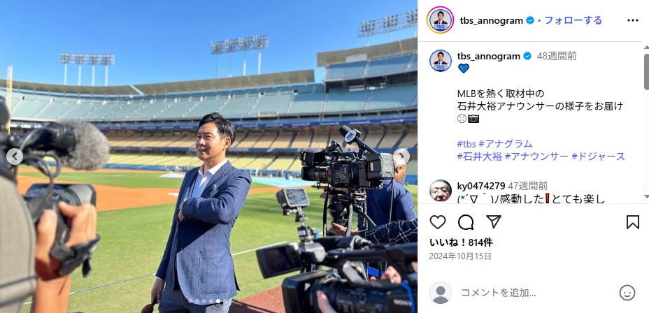 TBSの石井大裕アナウンサー(画像はTBSアナウンサー公式Instagramから)