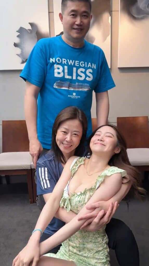 お母さんは、もう大人になった娘を両手で抱き、過去の写真と同じように笑顔を見せました。李芸さんも、お母さんに顔を寄せて幸せそうに目を閉じます。こんなに大きくなっても、お母さんに抱きしめられるのは気持ちの良いものですよね。昔よりも貫禄の出たお父さんも、2人の後ろで穏やかに笑っています。