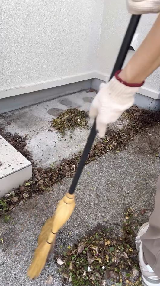 必死で刈っていくと、ようやくもともと置いてあった鉢や小物たちを救済できました。最後はほうきで掃いてキレイにし、小物たちを並べていきました。
