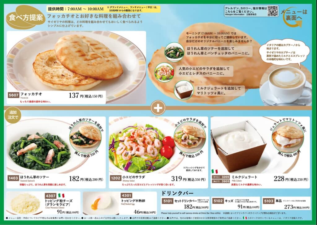 「朝サイゼ」のメニュー表(サイゼリヤ公式サイトより)