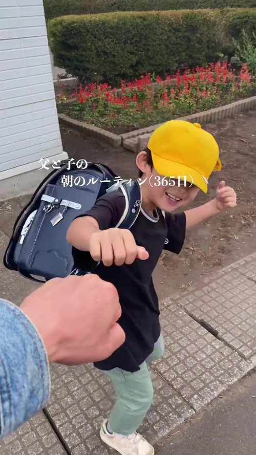 毎日“グータッチ”で小1息子を送り出すシングルファザー→1年後…… 現在の姿に「やだ、なんか涙が」「1年でこんなに」