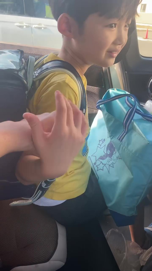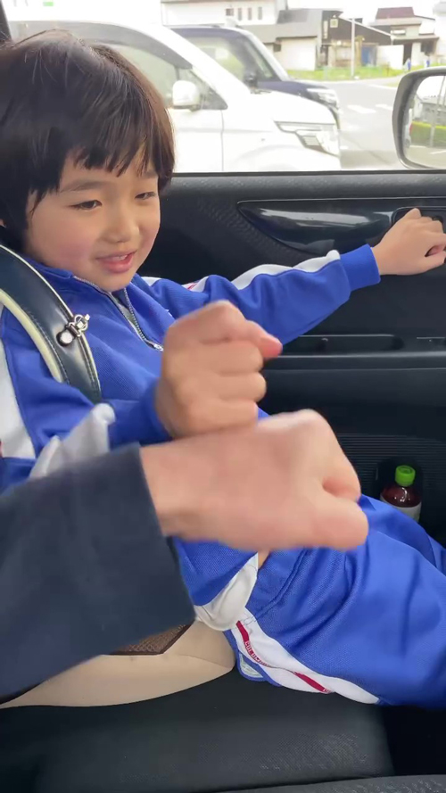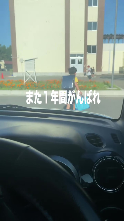 最初の場面から1年たち、再び夏が訪れました。半そでを着たようたくんをいつものようにグータッチで送り出します。えむとしさんの拳を優しく包み込み車から出ていくようたくん、なんだかこの1年でとても凛々しい姿に成長しましたね。また1年間学校がんばってー!
