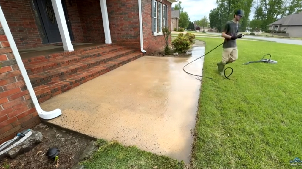 動画を投稿したのは、無料で家屋の清掃を行うYouTubeチャンネル「SB Pressure Washing」(@SBPressureWashingShorts)のスペンサーさんです。今回見つけたのは、レンガ造りで豪華ながら、ひどく玄関が汚れた家。家主に声をかけ、「無料で清掃しますよ」と提案します。