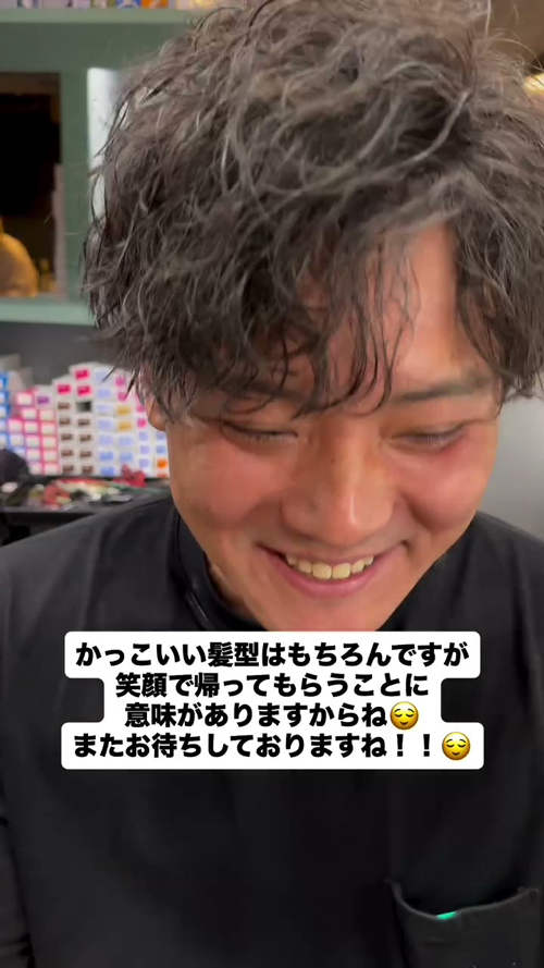 この変わりように、お客さんもうれしさを隠しきれていません。カット前は緊張した面持ちでしたが、カット後は常に笑顔です。家に帰ったら、妻もビックリすること間違いなし……!