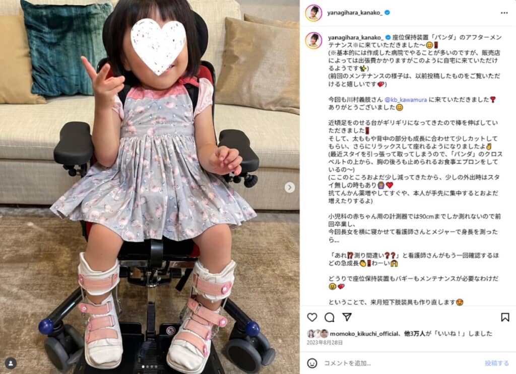 補装具を取り付けた後の娘(画像は柳原可奈子Instagramから)