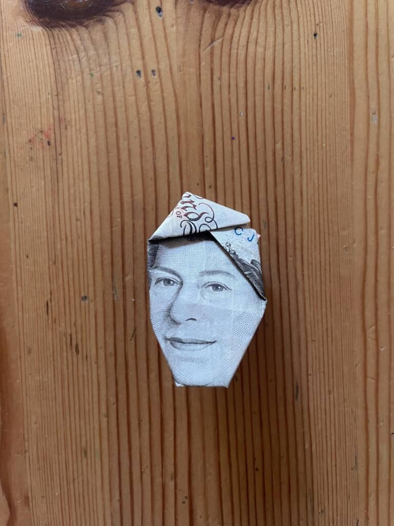 そこで“苦肉の策”としてやってみたのが、お札の顔に合わせてターバン状に折るやり方。これなら、折る手間やユーモアの感覚も加わり、受け取りを断りにくくなりそうですね。こうしたお札の折り方は以前から知られていますが、改めて見るとなかなか凝っています。