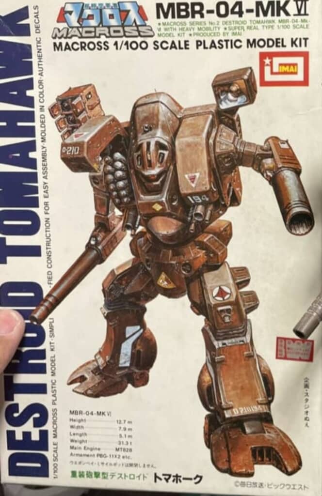 投稿者は、さまざまな模型作品を作っているXユーザー・前多ミライ(@fgl_mirai)さん。今回は、テレビアニメ「超時空要塞マクロス」に登場する機体「MBR-04-MkVI トマホーク」のプラモデルを箱のイラストそっくりに塗り上げました。