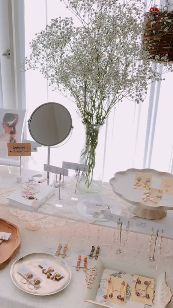 しかし、その後もあいみさんはものづくりに没頭し、ある日家がお店状態に! どうやら、マルシェに出ると決めたそうです。いつの間にか上達し、かわいらしいアクセサリーの数々に夫はびっくり。当時は、帰ってくるたびにいろいろと驚かされたとのこと。