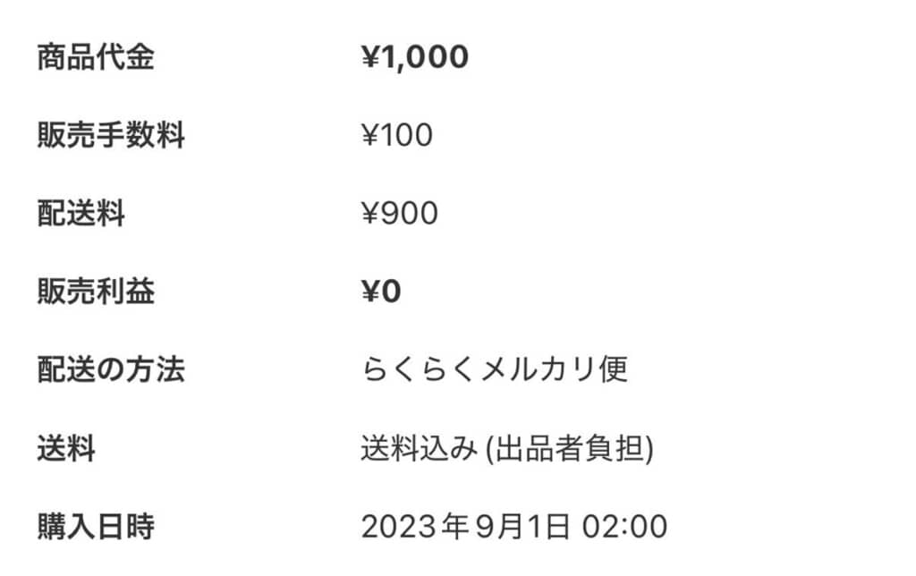 1/3)1000円で売れた商品。しかし販売手数料100円と送料900円で、まさかの利益0円という悲しすぎる結果に