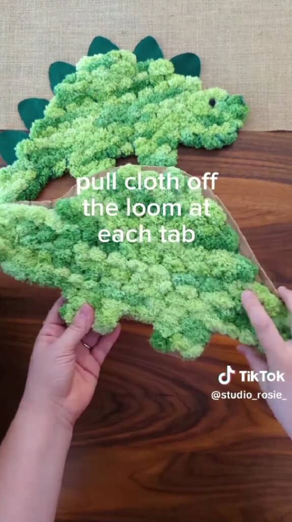 工程が進んでいくと、段ボールの恐竜がだんだんと緑の毛糸で覆われ、立体的でふんわりした質感になっていきました。