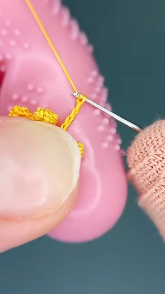 細いかぎ針を巧みに動かし、爪先サイズの花を小さく小さく編んでいく投稿者さん。細かな部分にはハンドメイド用のペンチを使い、ひまわりらしさを表現します。見ているだけで目が痛くなる細かさだ……!