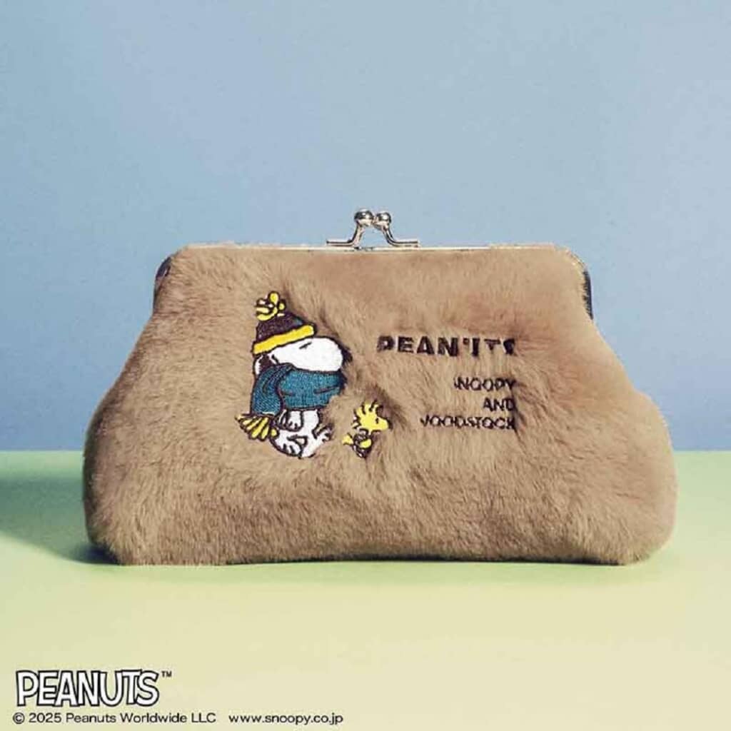 スヌーピーの刺しゅう入りがま口ファーポーチ(出典:Amazon.co.jp