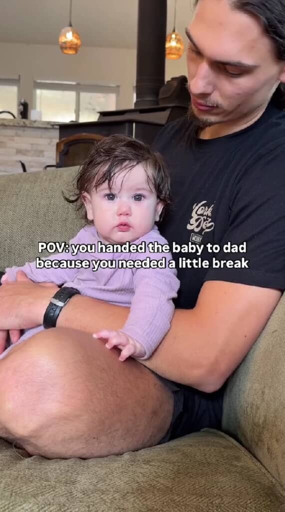 ママがひと休みのため、赤ちゃんをパパに抱っこしてもらったら……「笑いすぎておなか痛い」 まさかの光景が6500万再生「怖すぎw」【海外】