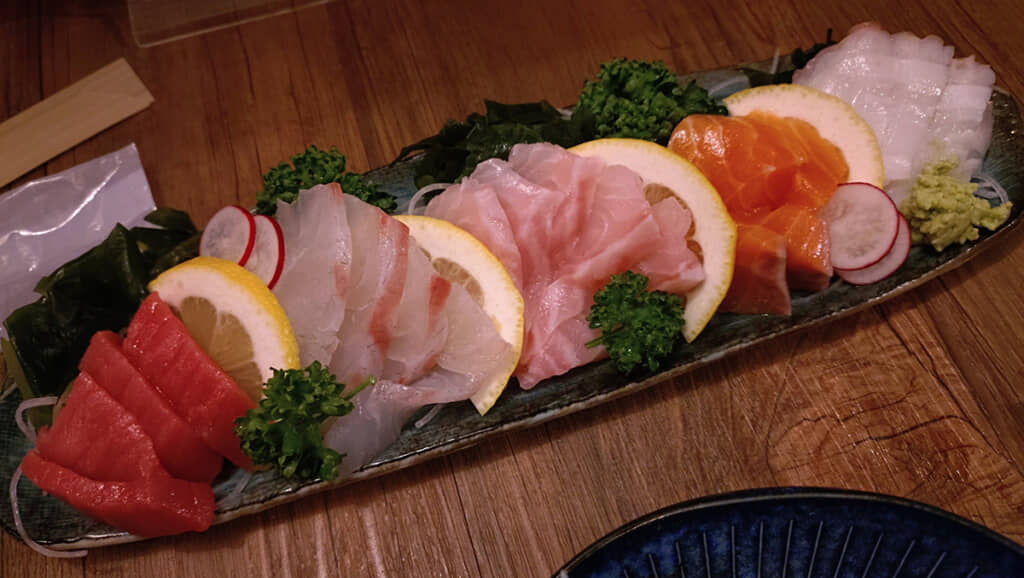 刺身3種盛りを注文したら出てきた刺身5種盛り