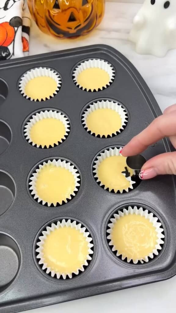 今回紹介したのは、小さなカップケーキです。生地を流し入れた紙製の型を用意し、カップ型天板に入れていきます。準備ができたら、型と天板とのあいだに口金を置きました。えっ、これだとカップケーキの形が崩れちゃうけど……?