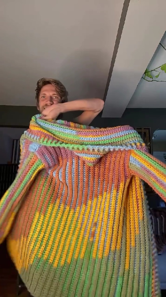 カラフルで巨大な毛糸をひたすら編んでいくと…… 驚きの完成に「天才」「見ていたら欲しくなった」【海外】