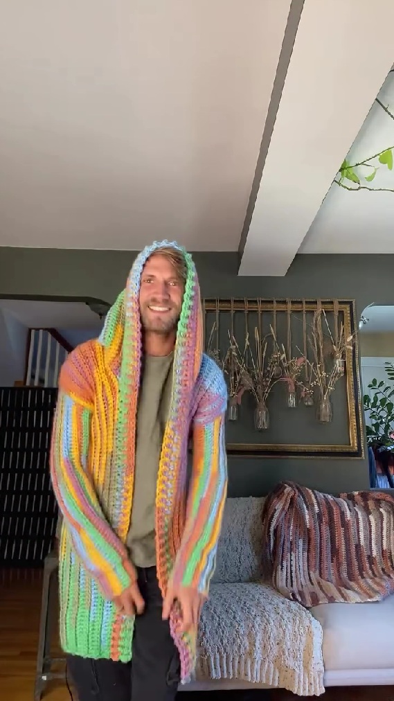 コメント欄では「天才!」「ぜひ作り方を教えてほしい!」「きれいでかわいいジャケットだね」「素晴らしい」「どこでそんなに大きな毛糸玉を見つけたの」「めっちゃ好き!」「すごく似合っているよ」「わあ、暖かそうでいいね!」「この大きさを編むのは大変だったでしょ。お疲れさま!」「見ていたら欲しくなっちゃった」などの声が見られました。