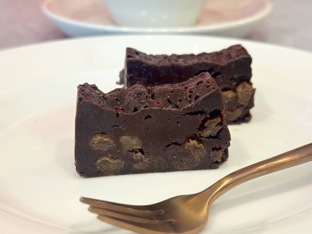 洋酒チョコ「ラミー」のラムレーズンがどっさり入ったチョコケーキ。