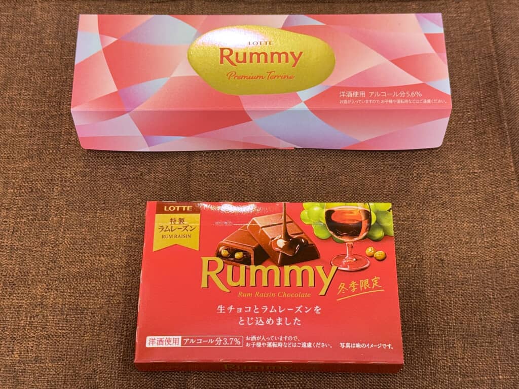 洋酒チョコ「ラミー」のラムレーズンがどっさり入ったチョコケーキ。