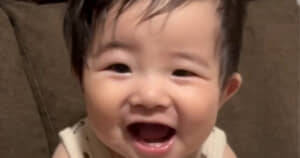 パパさんが再度「ただいま!」と声をかけると、満面の笑みで「あふ!!」と可愛い返事をするしゅうくん。全身で嬉しさを表す息子の愛らしい姿に、動画からは思わず一緒に笑ってしまうママさんの声も聞こえます。
