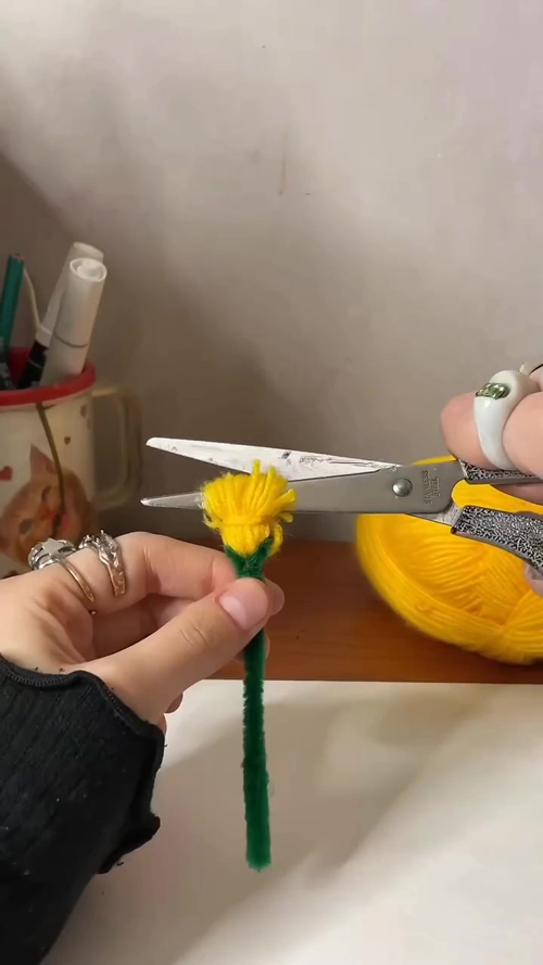 投稿者は、海外のInstagramアカウント「DIY And Crafts」(@diy___and___crafts___)。モールや毛糸、さらに食器などを使ったハンドメイドのアイデアを紹介しています。話題になったのは、緑のモールと黄色の毛糸、フォークを使った手芸作品の投稿です。