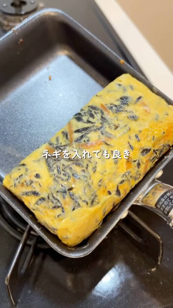 「ひじきの卵焼き」完成! ネギを混ぜて焼くのもおすすめ