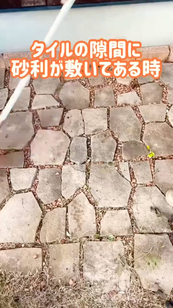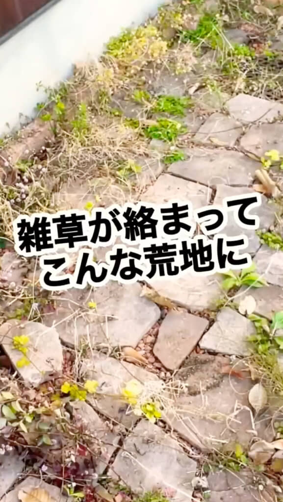 雑草ボーボーの庭タイルに“バケツと水”を使うだけで→「天才」「これはすごい!」一瞬で消え去る目からウロコの掃除術に反響