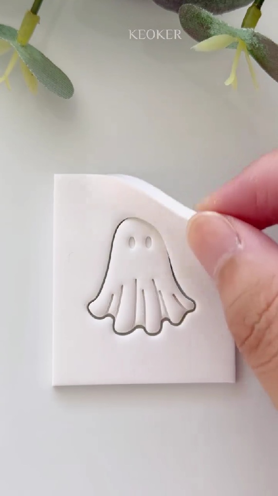 最初に登場するのは、おばけの形に型抜きをした白い粘土。ふんわりひらひらとしたおばけはこのままでもとってもかわいい風貌ですが、投稿者さんはオリジナリティーのあるアレンジをするようです。