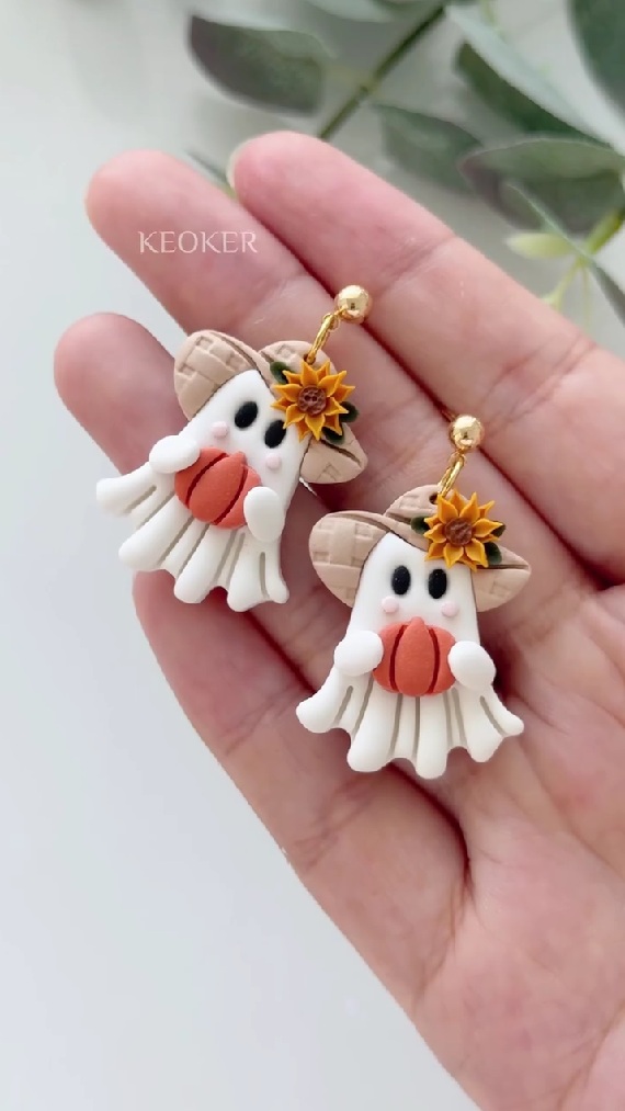 今回注目を集めているのは、真っ白なおばけが麦わら帽子をかぶり、オレンジ色のかぼちゃを抱えている愛らしいイヤリングを作る動画です。