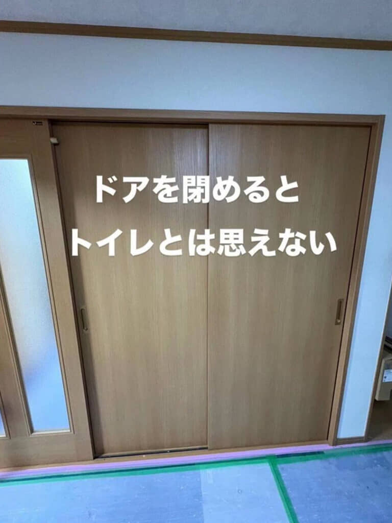また、予算を抑えるため便器は元のものを移設し、クローゼットのドアもそのまま再利用しています。そのためドアを閉めれば、見た目は完全にクローゼットのまま。ぱっと見ではトイレに見えないというのもうれしいポイントです。