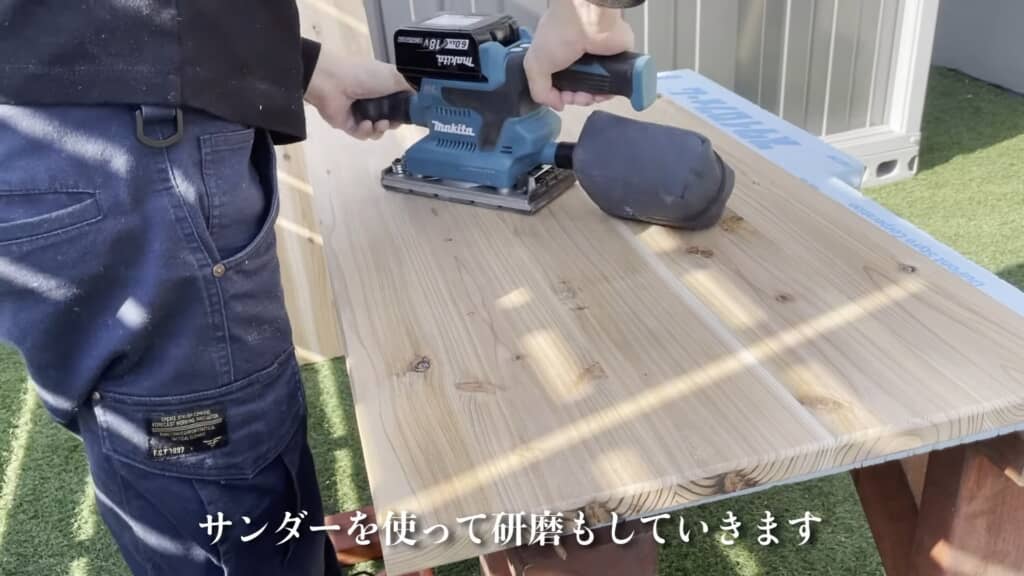 床板をていねいに磨いて仕上げます