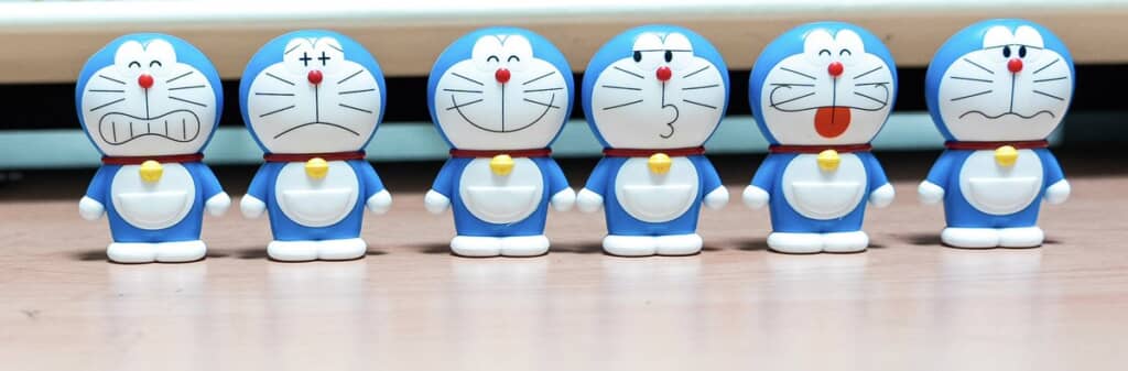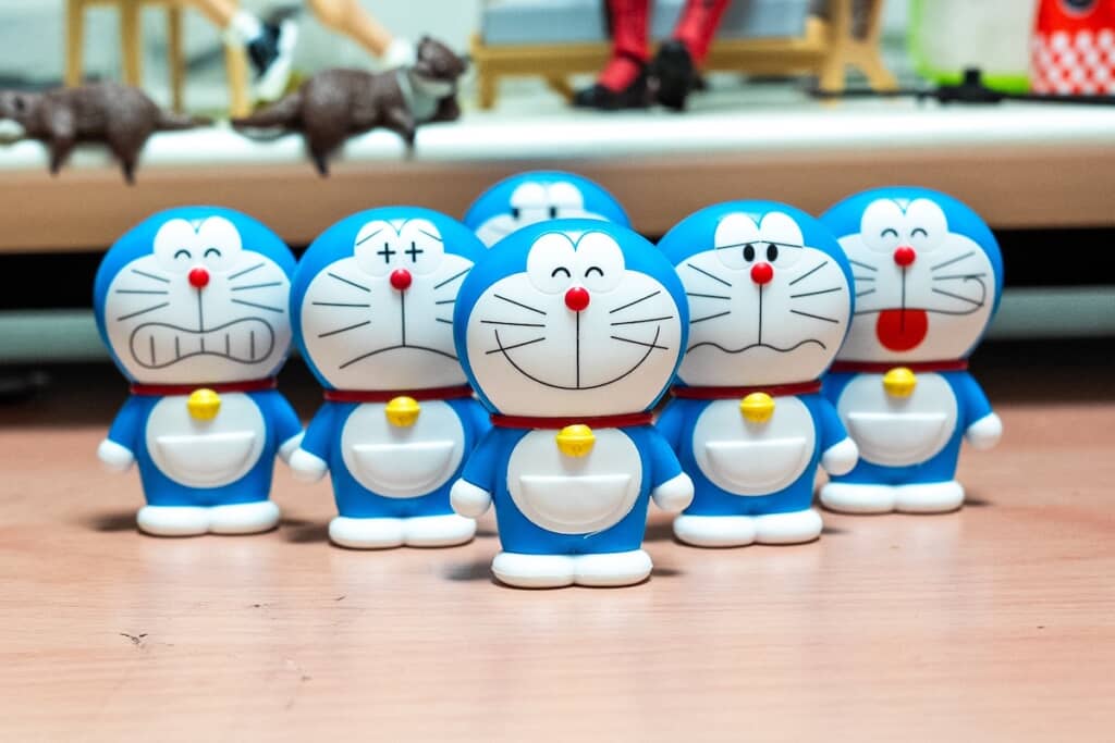 ドラえもんのフィギュアが横向きに立っている。薄い。