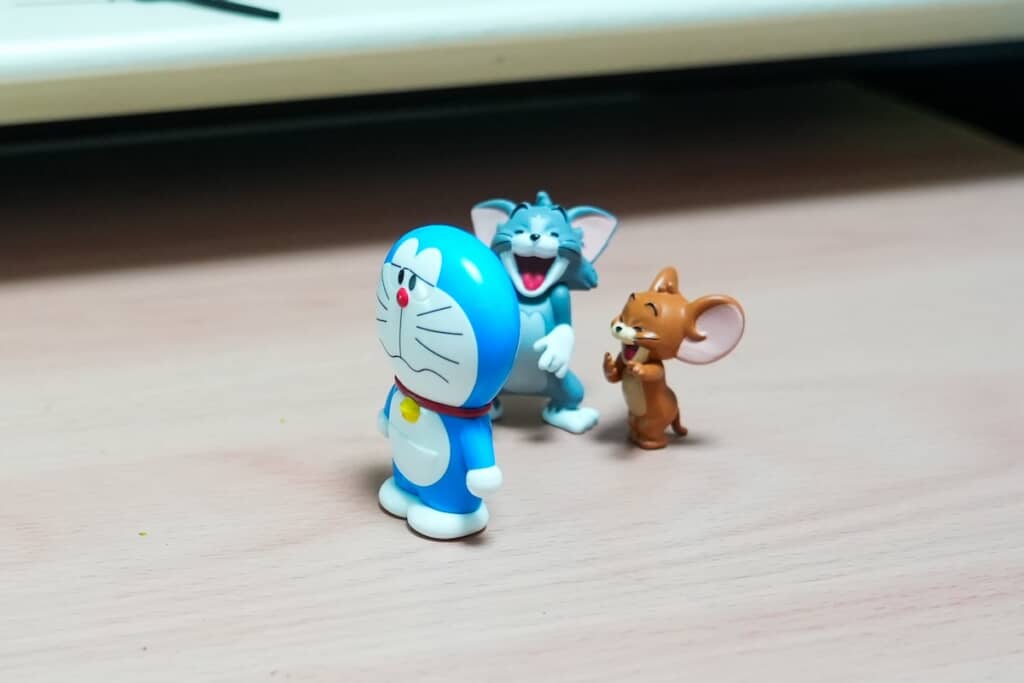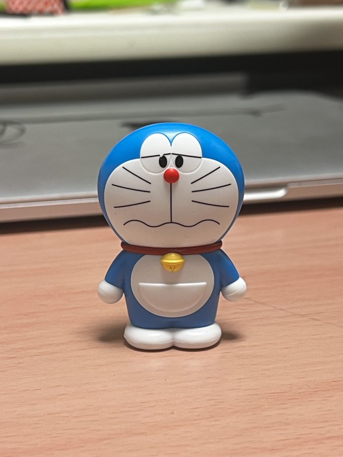ドラえもんのフィギュアが横向きに立っている。薄い。