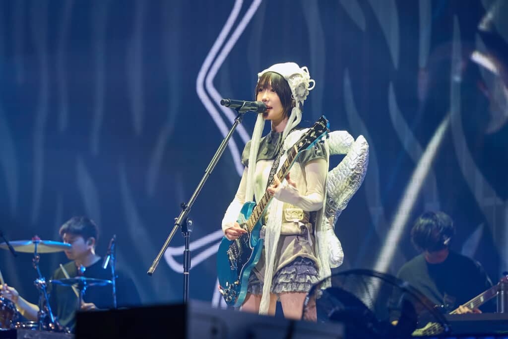 その後はギターを手に「普変」「KILL LOVE」を演奏し、「ぼく、こんなペンライトの灯りの中で演奏するの久々。とにかく楽しいです!」と話しつつ、「骨バキ☆ゆうぐれダイアリー」ではイントロからアウトロまで力強いデスボイスを響かせたほか、ラストの「絶絶絶絶対聖域」では、ステージ上を練り歩きながらパフォーマンスを披露。