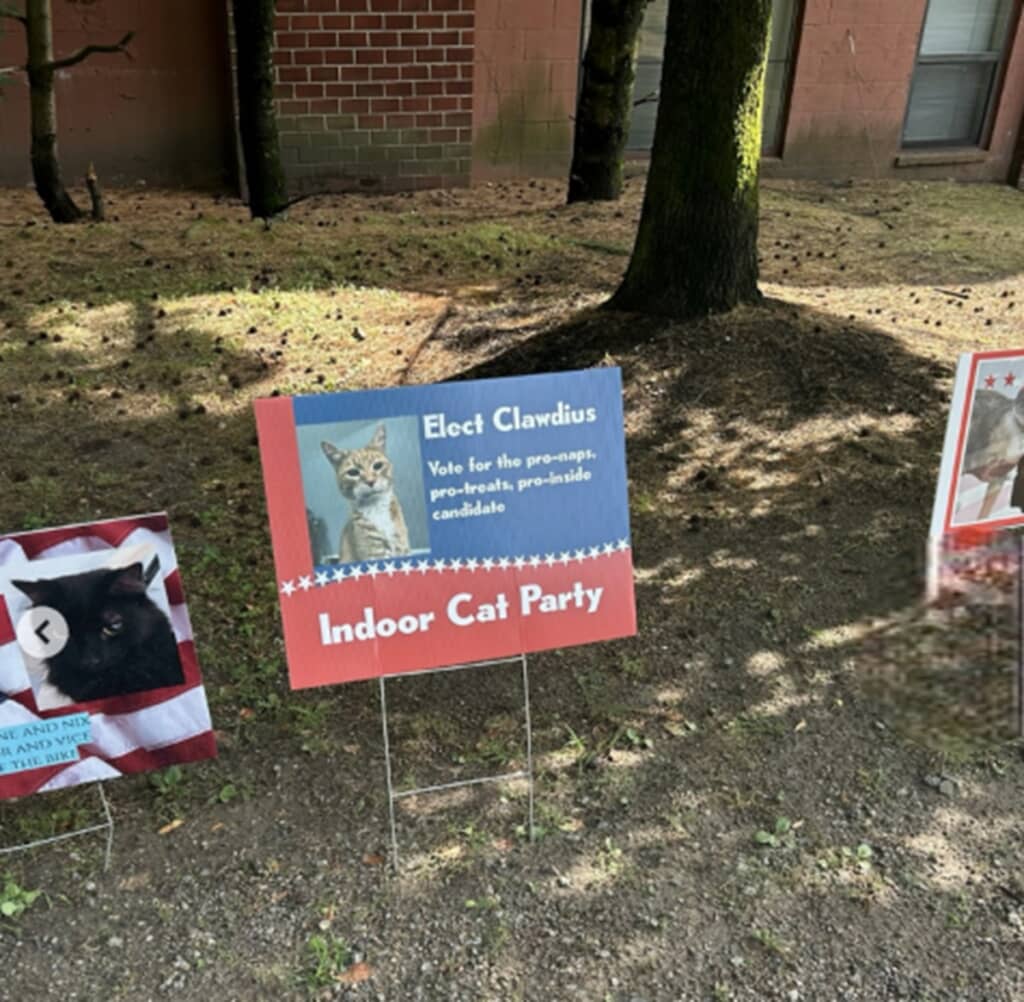 立候補した猫たちの看板がずらり(画像はInstagramアカウント「pawesomeplanet_」から引用)