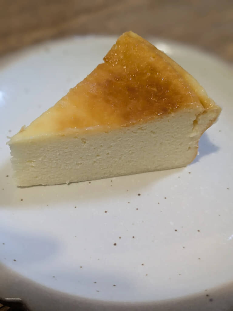 1つ目は、チーズケーキ。中はしっとりとなめらかで、上にはカリッと焦げ目がついています。ほどよい焼き加減で、お店の商品のような見た目。