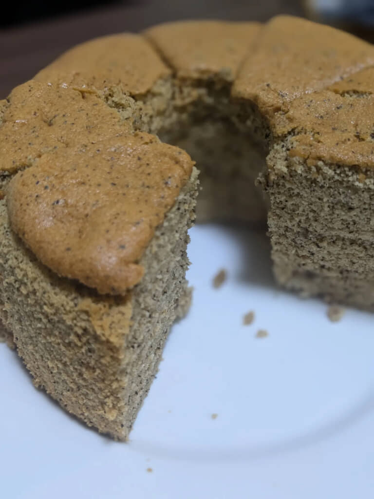 2つ目は、紅茶のシフォンケーキ。スポンジはふわふわで、こんがり焼きあがった茶色い表面がいいアクセントになっています。全体に紅茶の茶葉が細かく入っており、香ばしい風味を楽しめそうな一品です。中学生男子がこんな素敵な料理を作れるなんてすごい……。